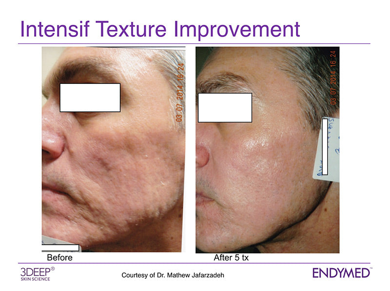 The Intensif’s smooth, gliding needle insertion motion is no like no other microneedle applicator today, offering fast and comfortable continuous operation mode. The Intensif’s non-insulated gold needles, together with EndyMed’s proprietary Fractional Pulse Mode technology, generate more heat safely into the dermis for better collagen remodeling, with significantly higher heating offered than insulated needles. The Intensif’s unique needles require less passes per treatment, for shorter treatment times and greater patient comfort, and provide quick treatment recovery times, faster than any other device on the market, with no bleeding or bruising.